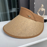 Ladies Wide Brim Straw Hat Sun Hat Summer Beach Foldable Ponytail Empty Top Hat UV Protection