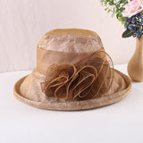 Organza flower print pot hat ladies summer thin breathable sun hat casual foldable