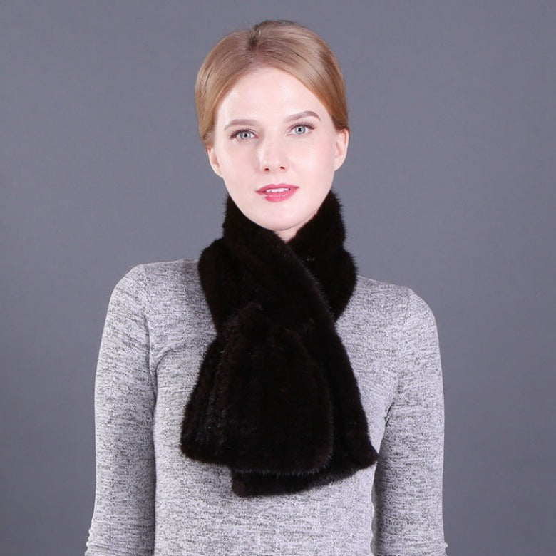 Winter Warm Ladies Double Sided Mink Fur Scarf Straight Weave Fur Scarf
