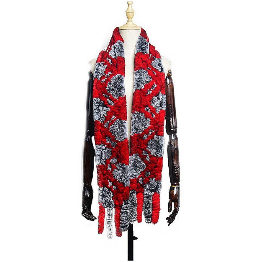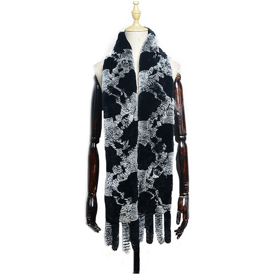 Women's Rex rabbit fur collar double-sided woven long warm scarf