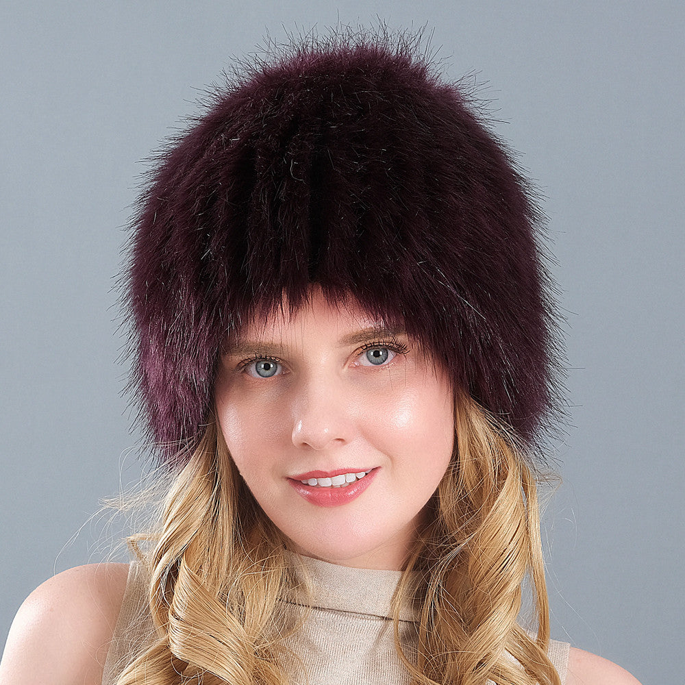 Ladies Winter Faux Fox Fur Straw Hat Wide Stripe Fur Ear Guards Keep Warm