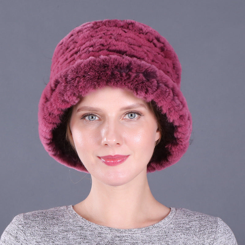 Rex rabbit fur hat women's autumn and winter trendy wool knitted curling hat dome small hat ear protection warm hat