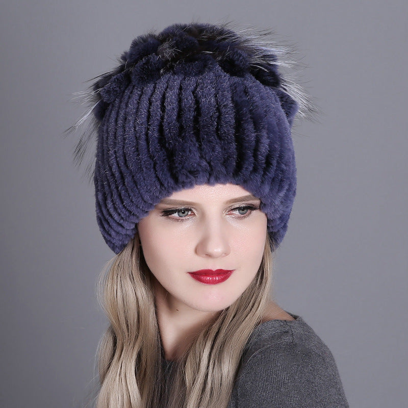 Rex rabbit fur hat warm thickening autumn and winter warm female colorful knitted hat