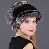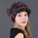 Winter Warm Rex Rabbit Hat Women's Fur Peaked Cap Fur Knit Hat